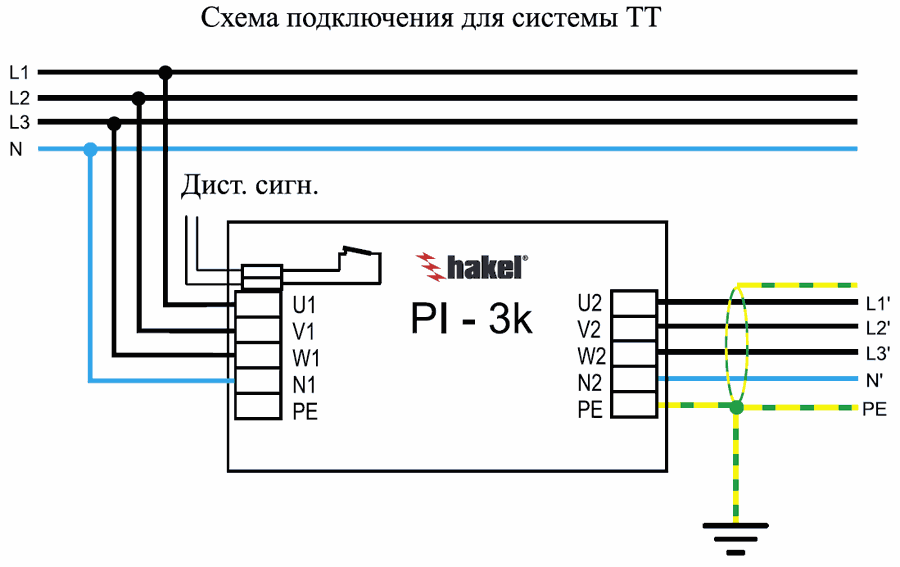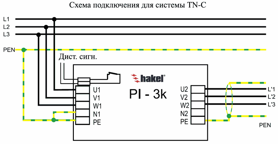 УЗИП выполнено по двухступенчатой схеме на варисторах (L/N) и разряднике (N/PE). Варисторы снабжены внутренними терморасцепителями, которые срабатывают при повреждении (перегреве) варисторов. Индикация состояния расцепителей осуществляется с помощью сигнальных кнопок, расположенных на корпусе устройства, а также с помощью дистанционной сигнализации (переключением «су контактов). Фильтры PI-3k 16 и PI-3k 25 выполнены в пластмассовом корпусе и устанавливаются на 35 мм DIN рейку. Остальные устройства серии PI-3k (16-80А), выполнены в металлическом корпусе и могут монтироваться с помощью винтов M4 (например, на корпус распределительного щита) или с помощью специального кронштейна на 35 мм DIN рейку.