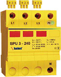 SPU3* Компактные трехфазные устройства серии SPU3* соответствуют II-му классу УЗИП, согласно ГОСТ Р 51992-2002 (МЭК 61643-1-98). Применяются в низковольтных силовых распределительных системах в пределах 0В - 1 зон молниезащиты (в соответствии с МЭК 1312-1, МЭК 62305 и CO-153-34.21.122-2003). УЗИП серии SPU3* имеют в своем составе варисторные секции (L/N) и разрядник (N/PE) и устанавливаются после УЗИП I-го класса во вводные или вторичные распределительные щиты и используются в сетях типа TNC, TNS, IT и TT.