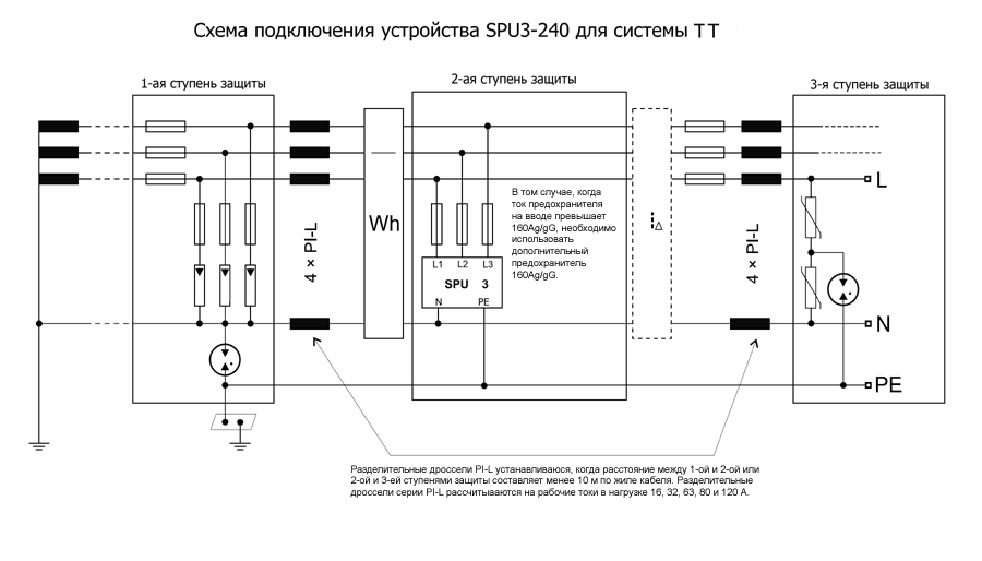 Компактные трехфазные устройства серии SPU3M* соответствуют II-му классу УЗИП, согласно ГОСТ Р 51992-2002 (МЭК 61643-1-98). Применяются в низковольтных силовых распределительных системах в пределах 0В - 1 зон молниезащиты (в соответствии с МЭК 1312-1, МЭК 62305 и CO-153-34.21.122-2003). УЗИП серии SPUM3* имеют в своем составе варисторные секции (L/N) и разрядник (N/PE) и устанавливаются после УЗИП I-го класса во вводные или вторичные распределительные щиты и используются в сетях типа TNC, TNS, IT и TT.